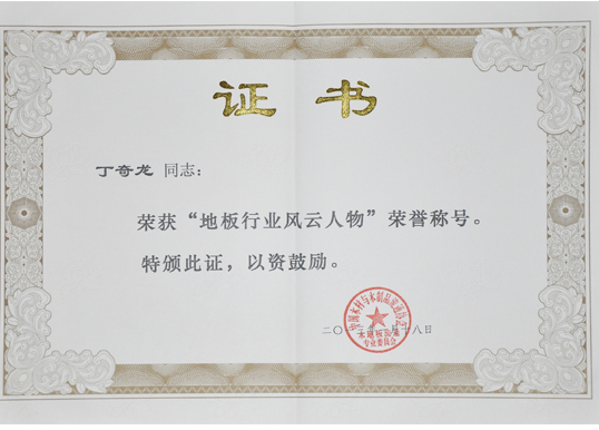 丁奇龙董事长获得“地板行业风云人物”荣誉称号