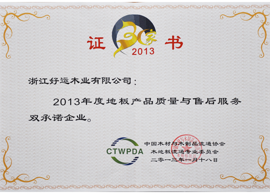51漫画在线观看地板获得“2013年地板产品质量和售后服务双承诺51漫画APP下载”荣誉称号